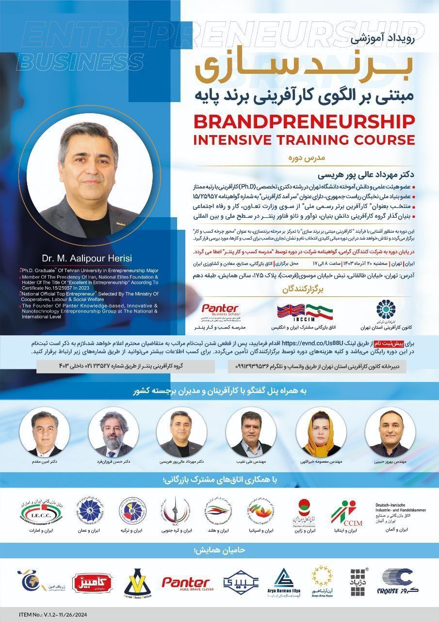 واحد آموزش اتاق مشترک ایران و امارات برگزار میکند 17 آذر 1403 • 1095 بازدید رندسازیمبتنی بر الگوی کارآفرینی برندپایه استاد دکتر مهرداد عالی پور هریسیدوره برای اعضای محترم اتاق رایگان است سه شنبه ٢٠ آذراتاق بازرگانی ایرانجهت ثبت نام و دریافت اطلاعات تکمیلی با ما در ارتباط باشیدتلفن 88810525داخلی 5 عضویت در خبرنامه آخرین اخبار را از طریق ایمیل دریافت کنید عضویت لطفا از طریق لینک ارسال شده به ایمیل تان فرآیند اشتراک را تکمیل کنید. کیوان بازسفیدپر دیدگاه خود را با ما به اشتراک بگذارید. ارسال نظر دیدگاه ها تا کنون برای این پست دیدگاهی ثبت نشده است.